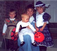 Merry Christmas! Here is the "normal family newsletter" version of our Seasonal Sampler, for those of you who just want the facts (less-but still plenty-of this analyzing life stuff). Sarah is now 6 1/2, in first grade, growing smarter and more beautiful and kinder every year. (Oh, these newsletter superlatives are so great! Parents and grandparents definitely have license to write this on a yearly basis, right?) She is learning to read, has spent some time learning to play violin but is now taking piano, did gymnastics for a while, loves to be with friends and cousins and grandparents, and holds dear the memory of a best friend who passed away this year, She can be SO giddy and silly that Lane and I always say she has the other's genes in this area. (I confess, however, that I have yet to see Lane giddy). She has demonstrated a very compassionate, caring nature and an interest in being a nurse someday. Nathan, who will be 5 in January, is still a tremendously dear and sensitive boy. This year he has shown a little more "toughness" and independence in his behavior. He still ties knots in everything. He loves watching any John Wayne movie with Lane, has 3 swords and 2 guns and typically has a sword near his bed or under his pillow at night. He is fascinated by Captain Moroni and Helaman's 2000 stripling warriors and Ammon's cutting off the arms of the Lamanite thieves and more. Nathan's natural aptitudes include things academic. He has often surprised us with some melody he remembers from 3 months ago, or asks how to solve some math problem, or requests us to dictate a word. Must be those Morley brains! :) We are also really proud of Nathan that he learned some gymnastics and some violin this year. (We loved how during his first violin recital, he stayed bowing for probably ten seconds!) Julia, or "Lulu,"will be "free" (3) this month and is at that wonderful stage where she is just starting to learn how to channel some of her energy and curiosity into productive (versus destructive) activities. This week she has been abnormally helpful-vacuuming, putting away silverware, making Nathan's bed, picking up toys while singing the Barney clean up song, hanging up her clean laundry, clearing her dishes without spilling, offering to help with the laundry, wearing underwear without having accidents! Is this a forecast of things to come? WOW, I hope so! She has gone from the baby talk of a 2 year old to really talking well and being much more understandable and communicative. Hooray! I love closing the gap in knowing what my children need, want, and feel. She's got rhythm in her bones, too-loves dancing and singing. She is delightfully sweet and affectionate, has tons of spunk, and more curiosity than we'd sometimes like. Now only if we could keep clothing on her... Rebecca, who turns 1 this upcoming week, could be called "angel child." To this point in her life, she has been about as great as a baby could be. She sleeps wonderfully. She plays by herself. Her Aunts and Uncles have wondered out loud if she ever cries. Well, yes, but rarely. Certainly, all this will change. But right now she is at the "fat and happy" stage of babyhood, and has been for a number of months. (Was I the baby who someone used to call "Marshmallow?!") She has a darling personality: she doles out kisses to Mommy, then playfully refuses Daddy any such privilege. Later, she'll relinquish and kiss him on the lips with a smile. She'll reach out to hug her siblings; they especially love this. Lane and I have watched with "bated breath" as Sarah, Nathan, and Julia have each carried Rebecca up the stairs or across a room, which is no easy task since she is so hefty and they are none to big. She has made having a fourth child all worthwhile. Lane is on a "high" taking pilot lessons right now. He has always dreamed of being a pilot ( I just hope he never loses his glasses during flight-he still hasn't had that laser surgery yet!). I suppose that since it will never be legal for him to drive as fast as he'd like that flying is the appropriate pastime for him. He has continued to enjoy working at FIBERNET. Educational opportunities abound in the technology industry. (This man reads more computer industry-related periodicals than I can count. Thank heavens most of them are free.) He has great co-workers for whom we as a family are grateful. (We drop in at work just to give the office staff a break from the adult world :)). He's worked with Scouts (Webelos) this year and had other service opportunities in our church that have blessed our family. He's been a tremendous help at home--when he is home--this year. The work associated with our young children can really overwhelm me at times, and he is a great father and husband. I love him for it. As for Liz, I'm just about as much of a mother as I've ever been this year. What in the world does that mean? Well, I'm learning to let Sarah go to school with very greasy hair and the same underwear that she wore yesterday, or to leave the house in unmatched clothing. We've had a few more cold-cereal-and-milk dinners than I'd hope for, but on the other hand, I'm also making more sit-down-and-eat-your-vegetable dinners than in the past. I'm learning how to help Sarah do her practicing in the morning and her homework after school (or in the car on the way to school). I'm learning to walk over laundry piles that have been on my floor more than a day (did I say a day? I meant a week) and hardly wince. I love reading to my children and singing hymns in the morning with scratchy voices (or only my voice, if everyone else is asleep or begrudging). I'm learning to let the toilet training take as long as it needs to. A few choice BYU students have helped me out a lot with my housework and caring for children, namely Shannon, Michelle, and Abi. What a blessing they have been! I love being a part of Relief Society, the women's organization of my church. Currently, I learning how to be a "doula" (non-medical s